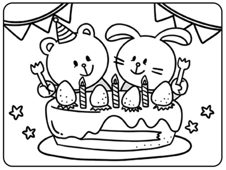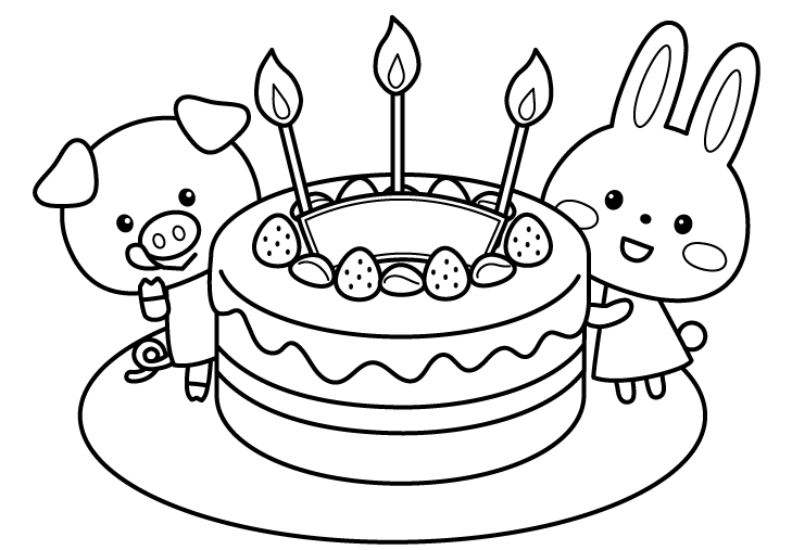 誕生日のお祝いをする動物達 ぬりえイラスト - No: 23757076無料イラスト・フリー素材なら「イラストAC」。