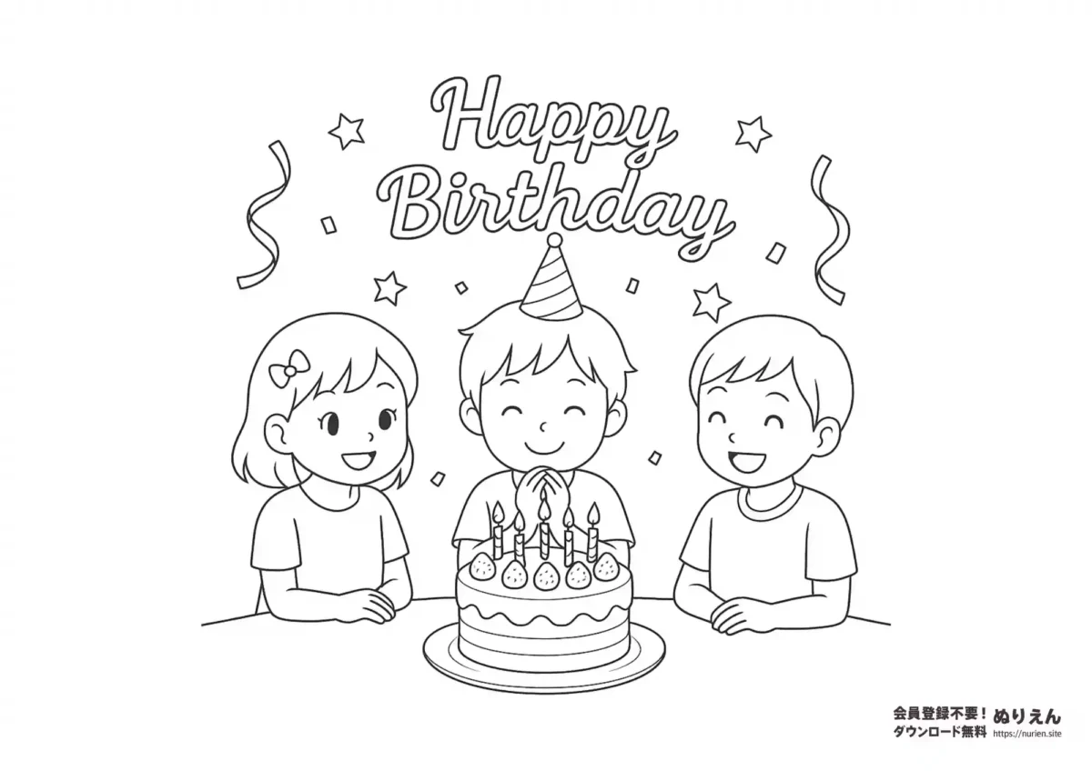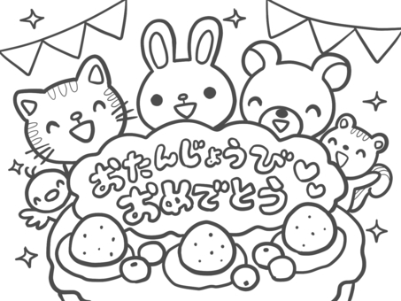 バースデー ぬりえイラスト無料イラスト・フリー素材なら「イラストAC」。