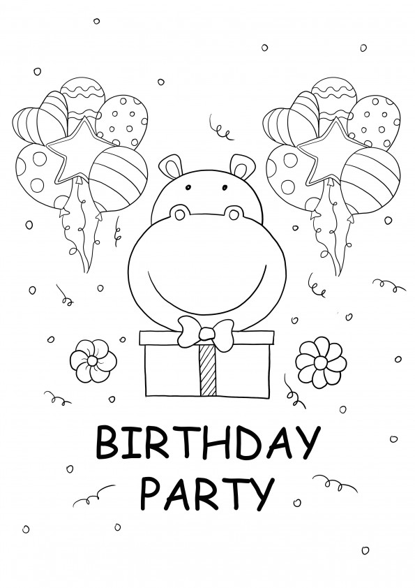 誕生日パーティーとケーキと風船:3歳以上の女の子用塗り絵 - 無料。