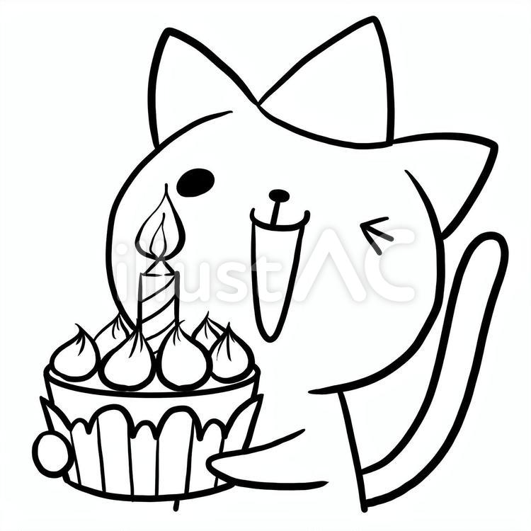 誕生日バースデーケーキ猫線画塗り絵イラスト - No: 868292無料イラスト・フリー素材なら「イラストAC」。