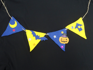 子供とおうちハロウィンの飾りを手作り フェルトで作るガーランド。