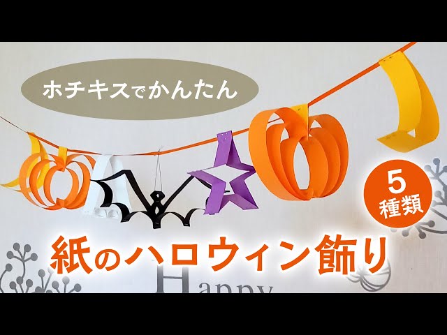 ホチキスでかんたん 紙のハロウィン飾り 音声解説あり Paper Halloween decoration made with stapler。