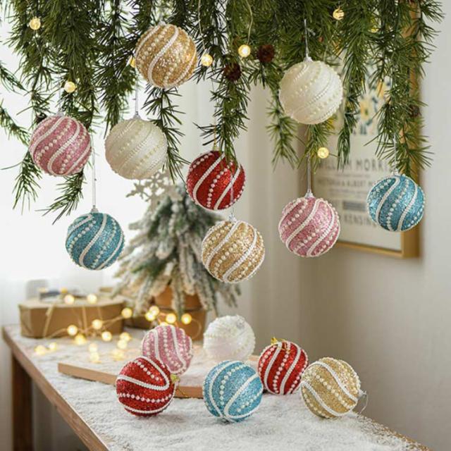 クリスマスツリー オーナメント 6個セット ボール パール付き 8cm 大きめ ピンク シャンパン 白 クリスマスツリー 飾り付け 装飾オーナメントセット クリスマス ツリー 飾り 吊り下げ キラキラ 豪華 高級感 北欧 おしゃれ モダン かわいい 店舗 お店送料無料 の通販。