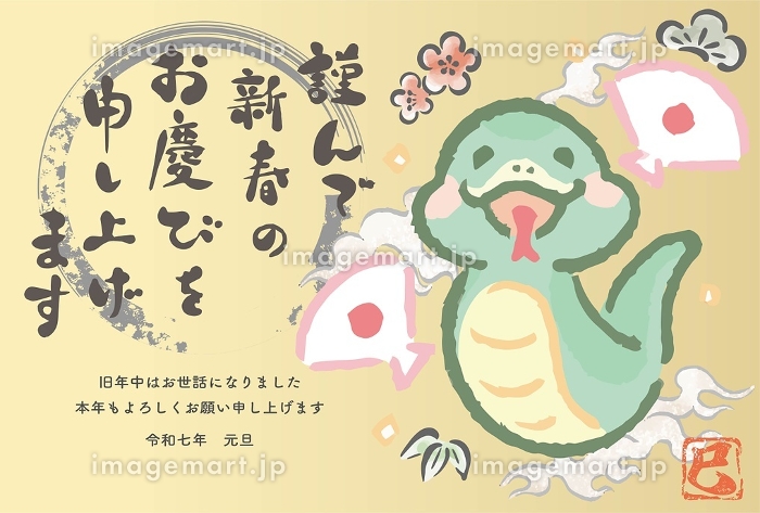 年賀状 年賀2025 宝船 巳年 巳 へび年 墨絵 手書き かわいい 正月 イラスト素材245684474- イメージマート。
