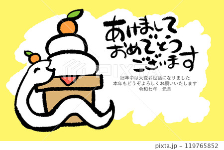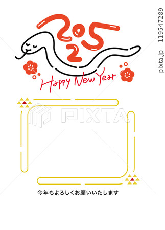 2025年へび年年賀状 手書きのかわいいフォトフレーム 写真年賀状 1箇所 縦向きのイラスト素材119547289- PIXTA。