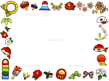 正月モチーフの手描きイラストセット シンプルな年賀状素材集のイラスト素材FYI04987051ストックフォトの QleanMarket キュリンマーケット。
