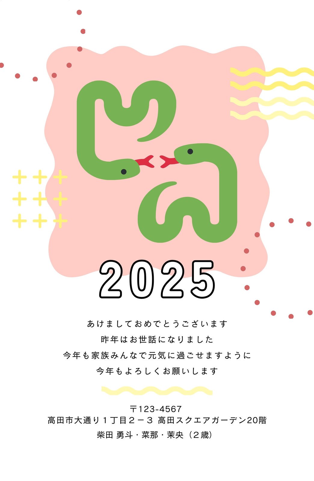 丑年年賀状 No:113972│年賀状2025 令和7年・巳年・へび 無料素材。