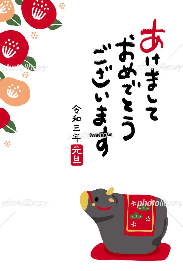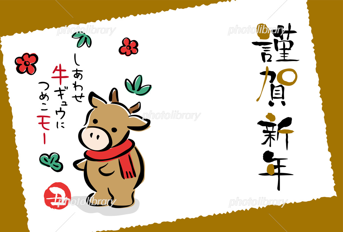2021年丑年 和風 手書きの牛の年賀状テンプレート イラスト素材6536486- フォトライブラリー photolibrary。