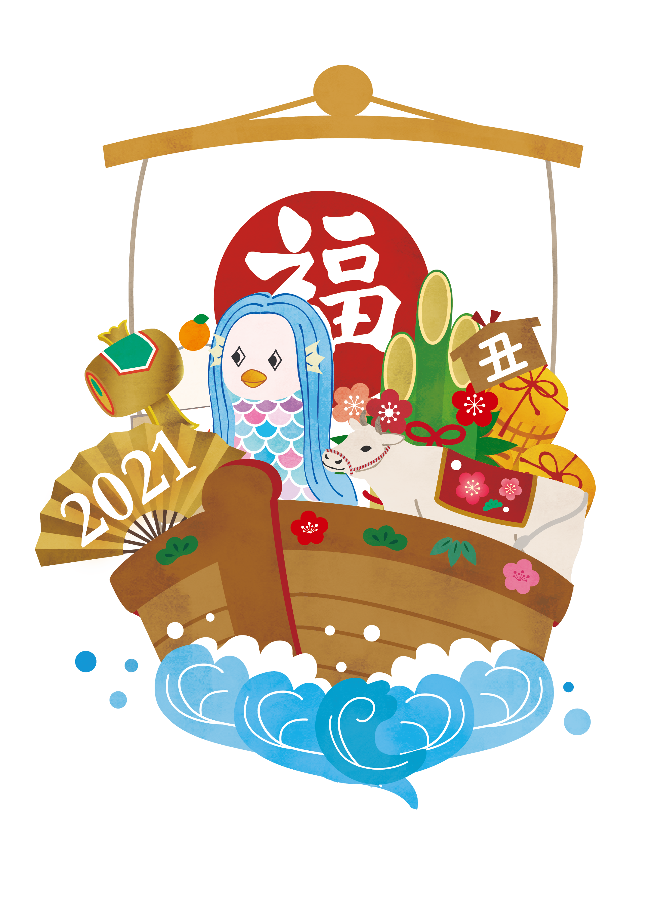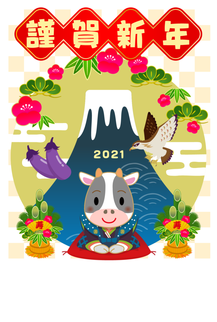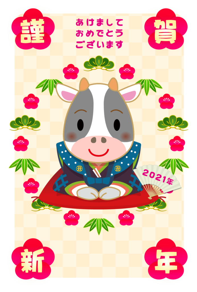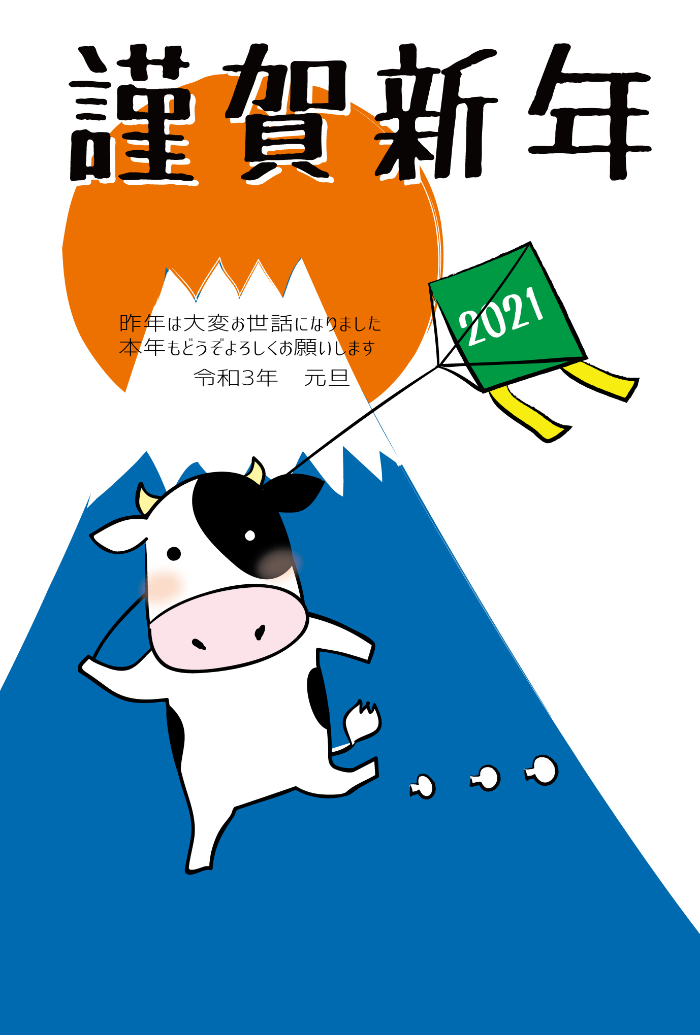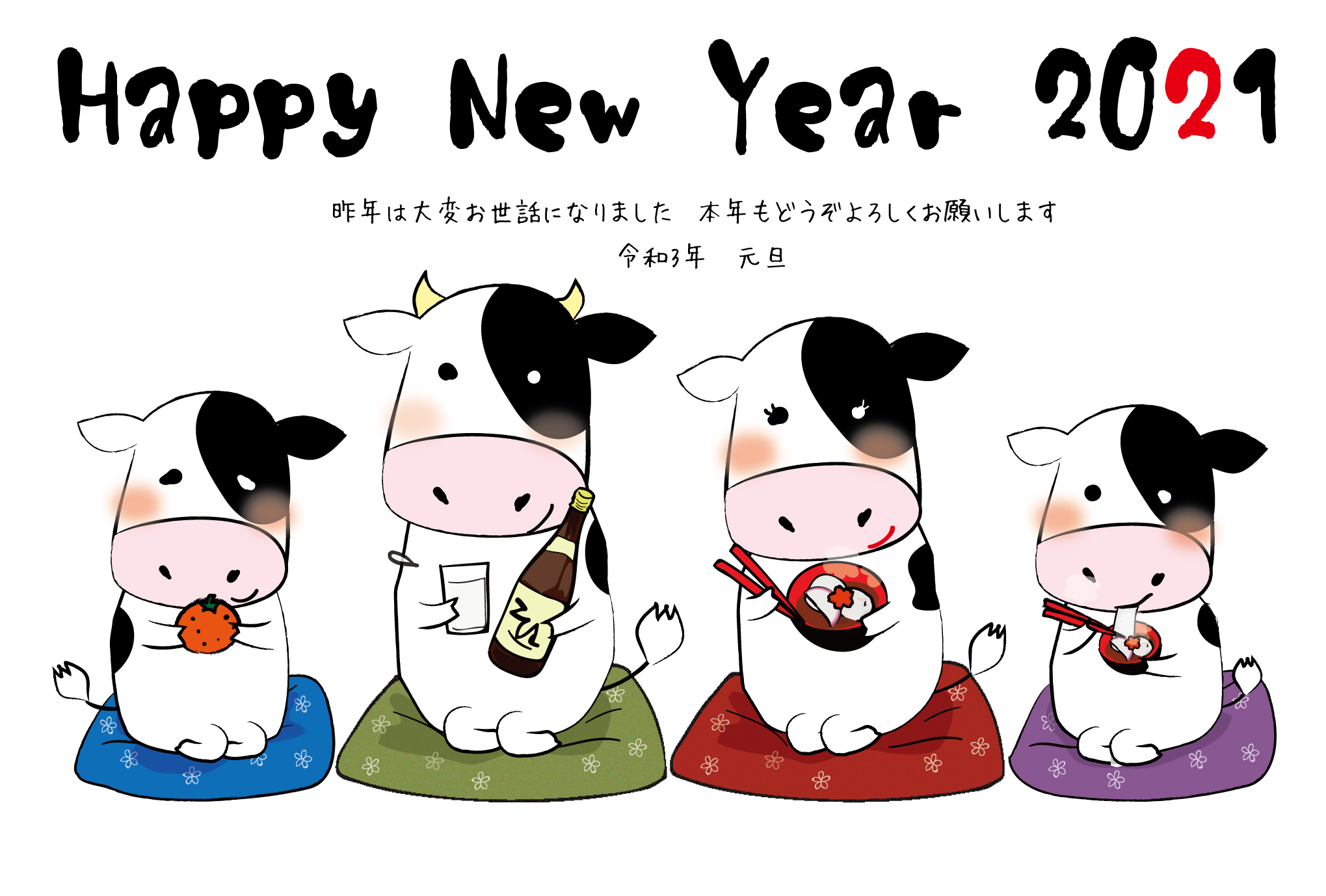 2021ウシ 丑 さんイラスト年賀状無料 vol.1 - 福井県小浜市のヨコハマヤ。