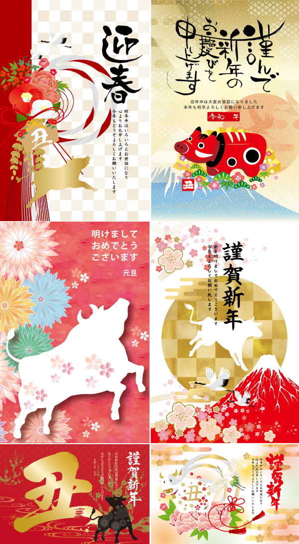 年賀状 丑年 の無料イラスト素材集イラストイメージ。