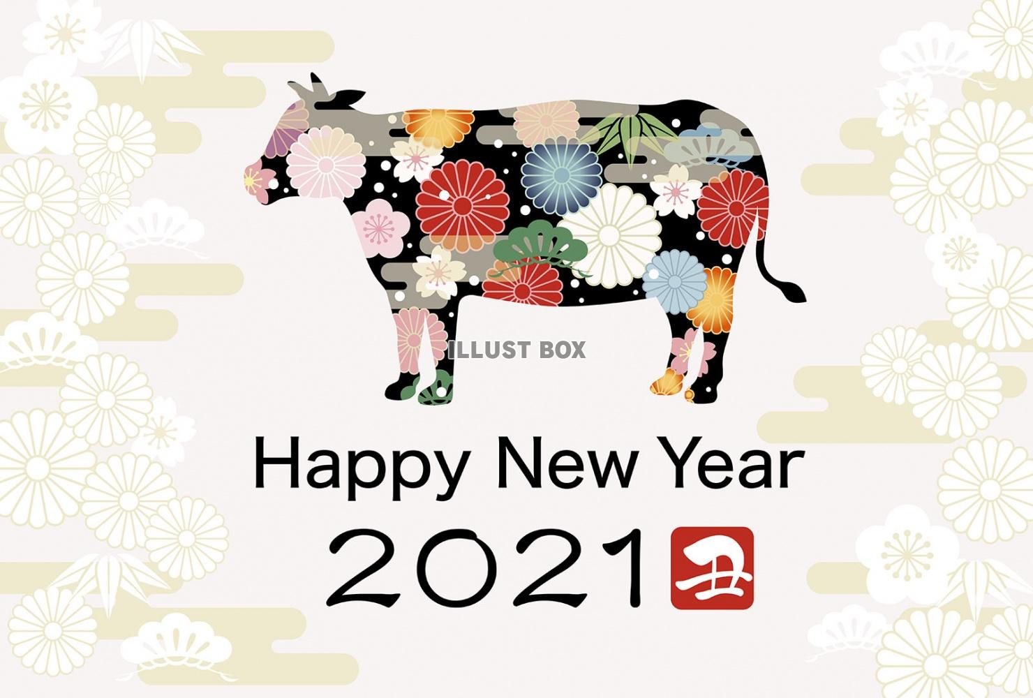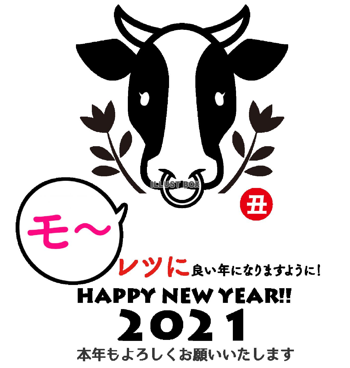 2021年丑年の年賀状 謹賀新年 おしゃれな牛の年賀状7無料イラスト素材素材ラボ。
