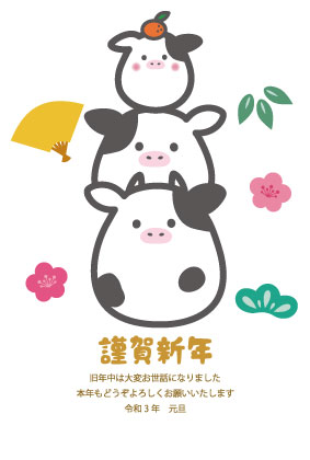 令和三 2021年丑年の年賀状テンプレート:イラスト無料。