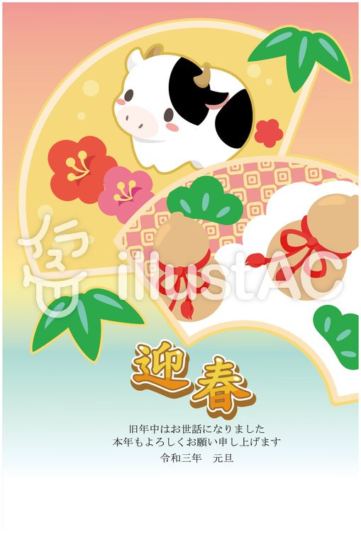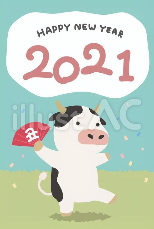 無料フリー素材のイラストAC 2021年 丑年年賀状 ストックイラスト。