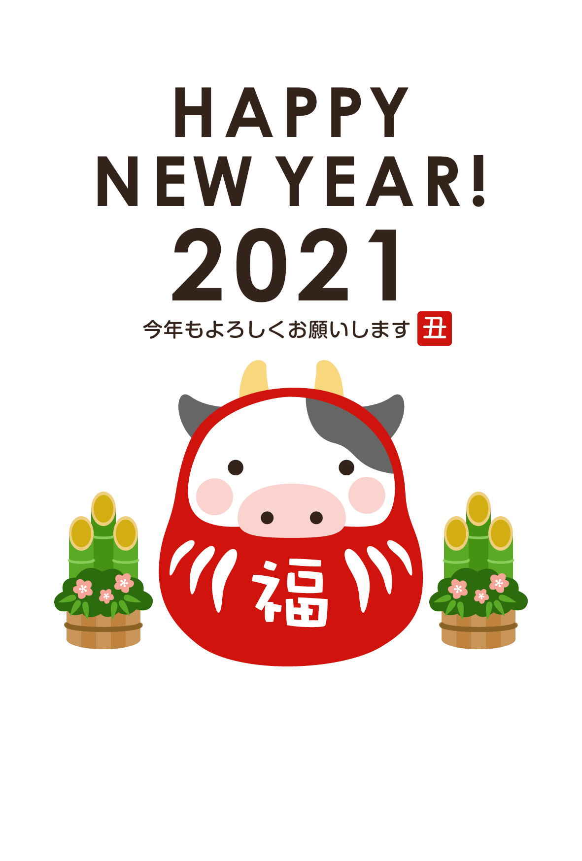 牛だるまと謹賀新年 年賀状無料イラスト 2021年 の無料イラストフリーイラスト素材集 ジャパクリップ。