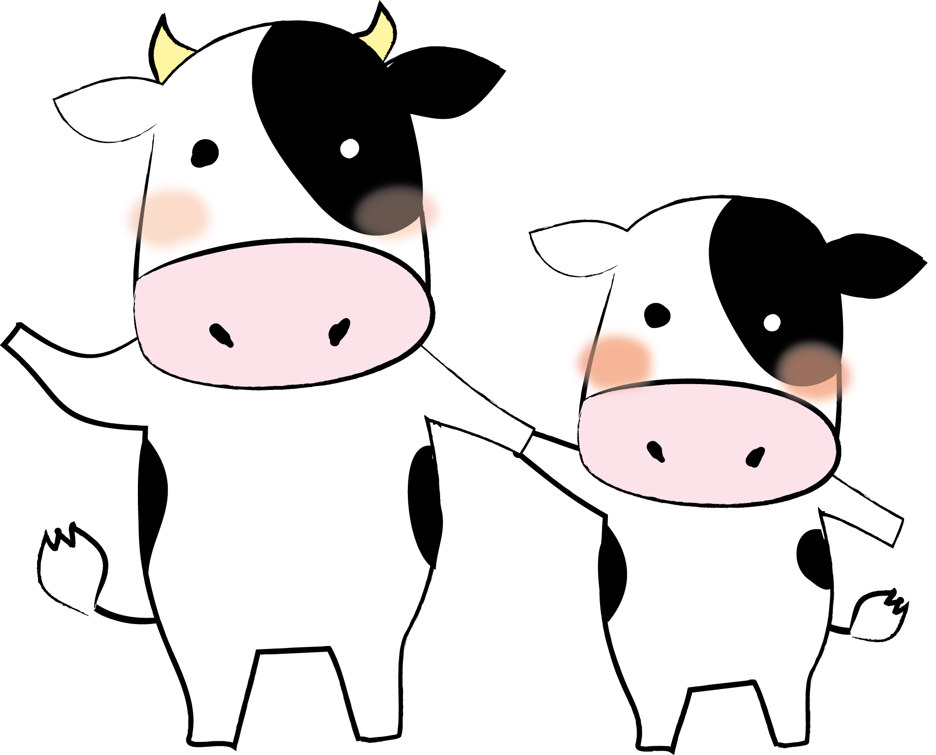 無料年賀状イラスト素材「丑 うし 」ほのぼの牛の親子ダウンロードかわいいイラストとテンプレート 年賀素材館。
