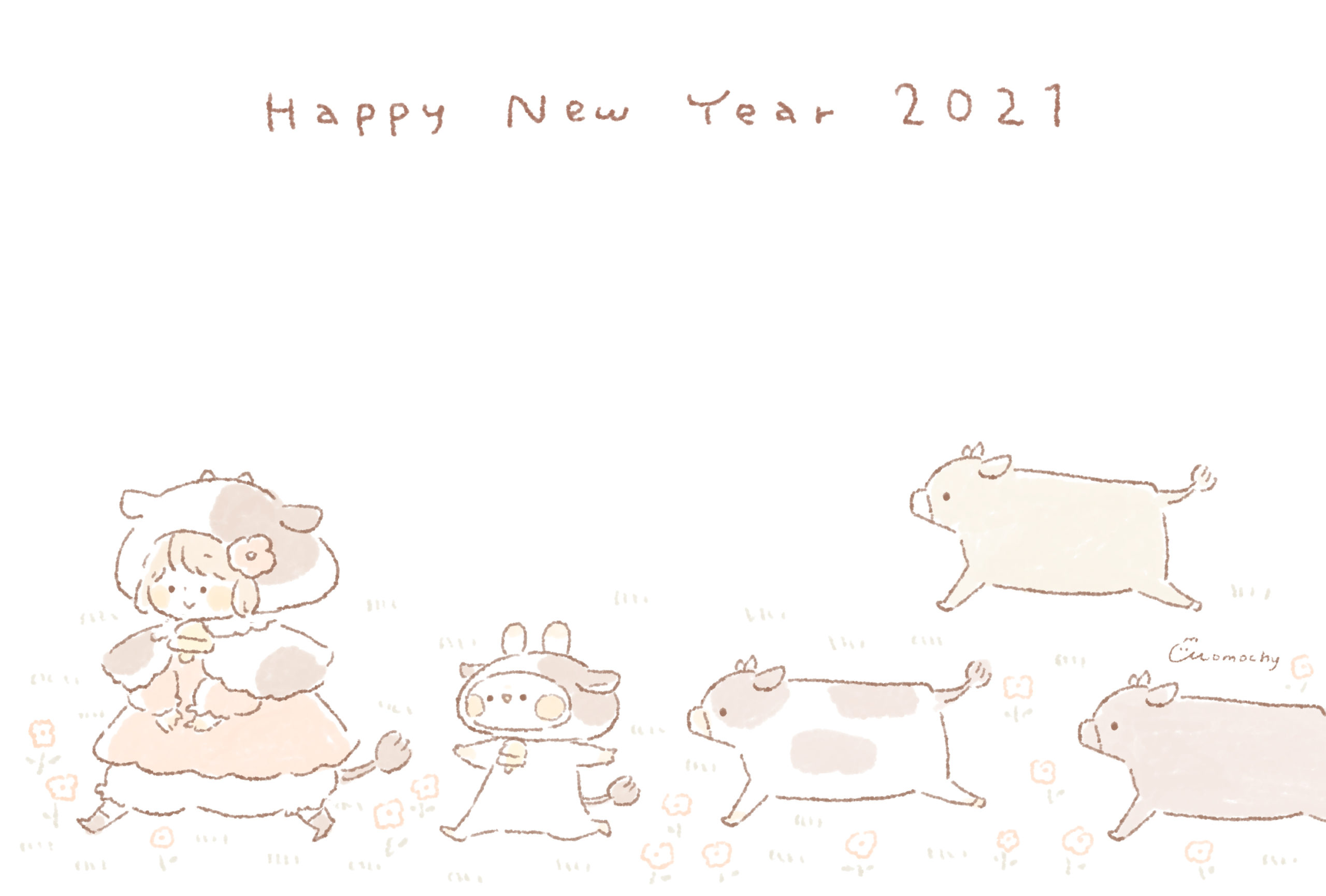 かわいい!2021年の年賀状「牛・丑」のイラスト無料テンプレート可愛いだらけ。