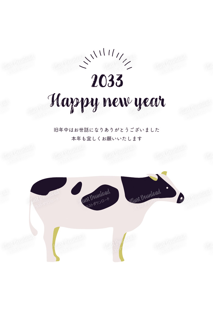 イラストデータ販売2033年 シンプルな丑年年賀状 縦型イラストダウンロード。