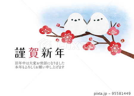 水彩のシマエナガと梅の木の年賀状テンプレート2のイラスト素材95581449- PIXTA。