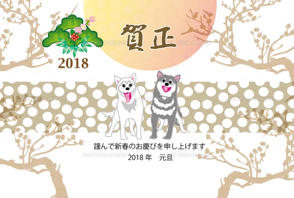 犬と梅の木と日の出のイラストの和風ポストカードのイラスト素材FYI00886924ストックフォトの QleanMarket キュリンマーケット。