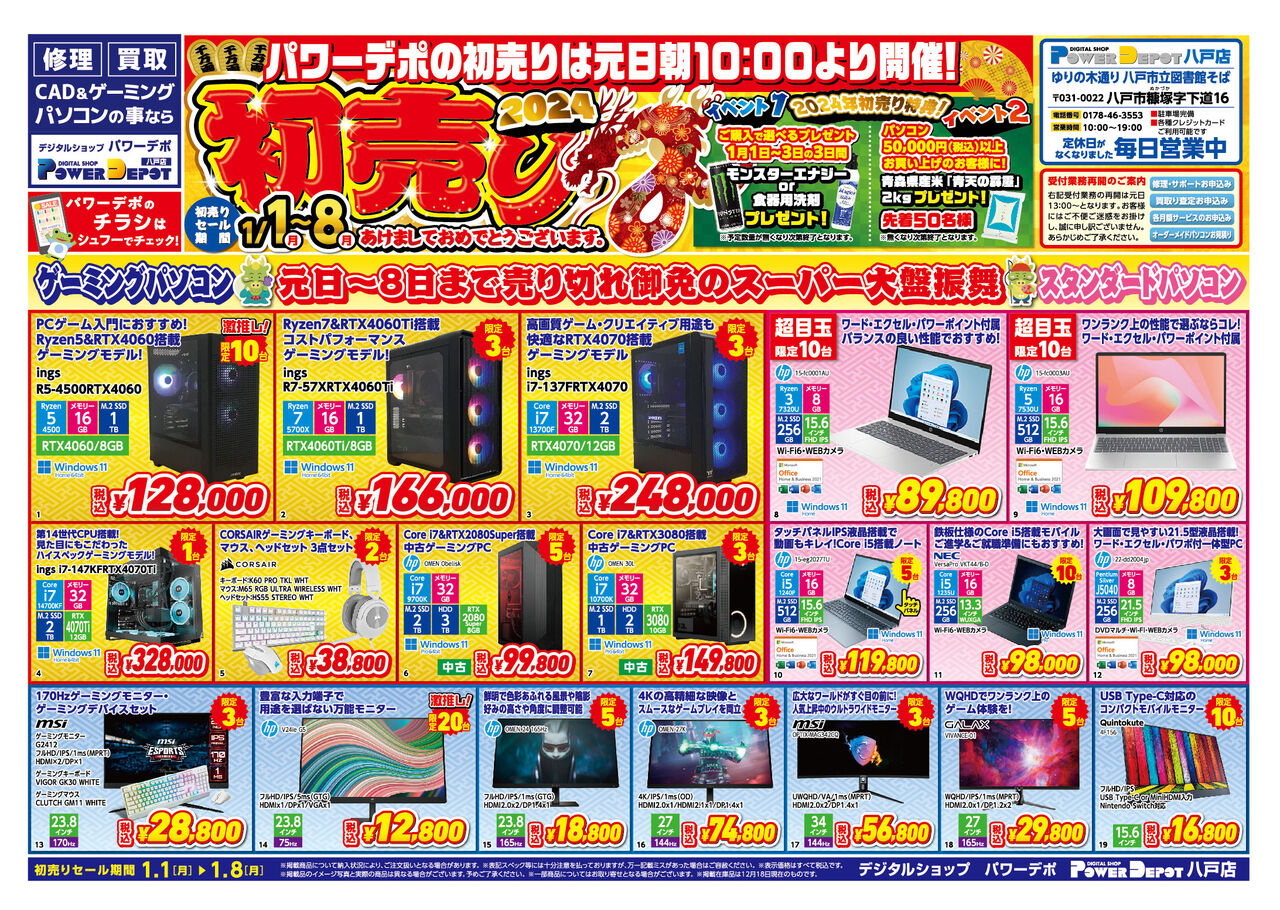 2024年 パワーデポ八戸店 初売りセールは元日朝10時より! : パワーデポ探検隊-八戸店 パソコン修理・販売 公式。