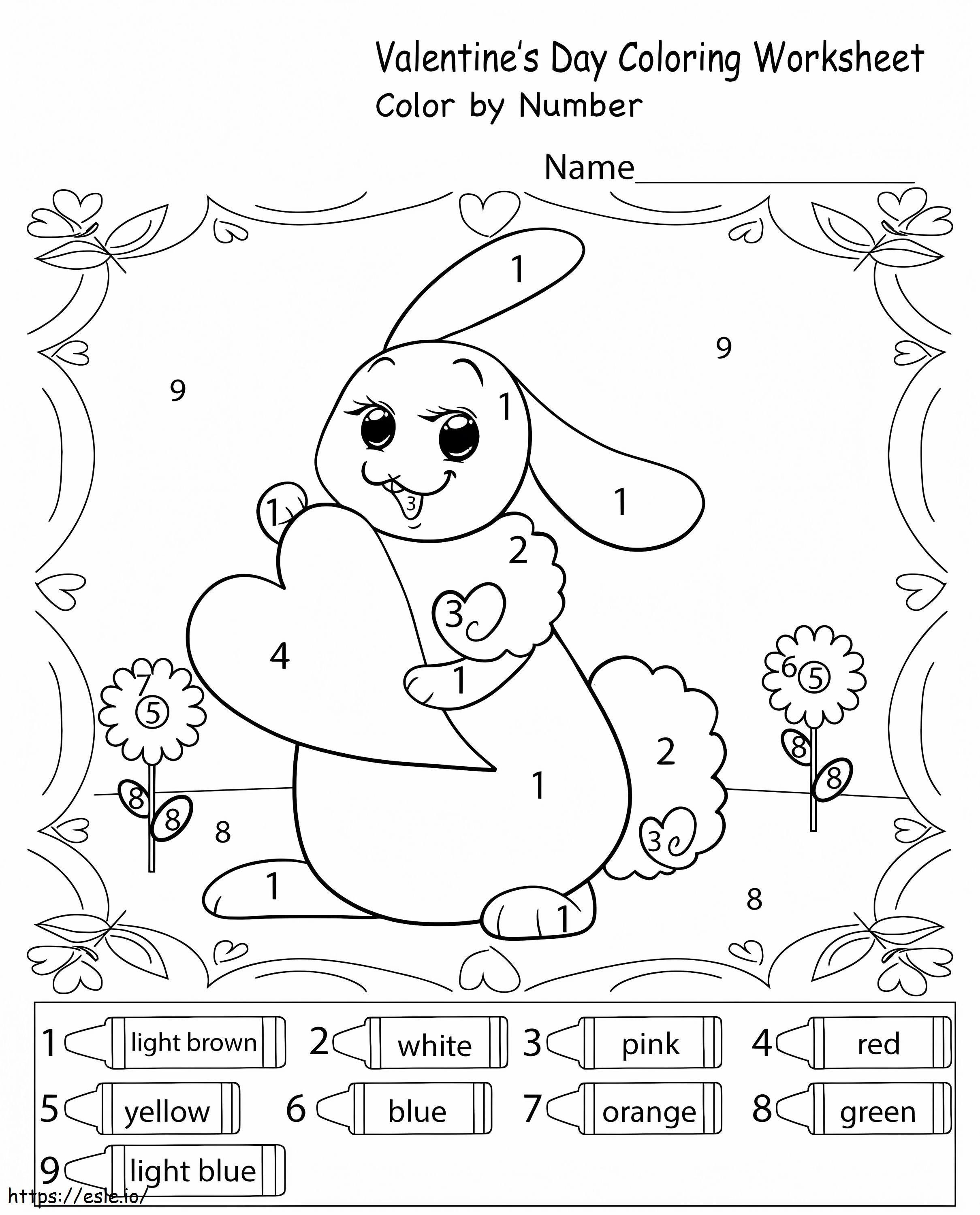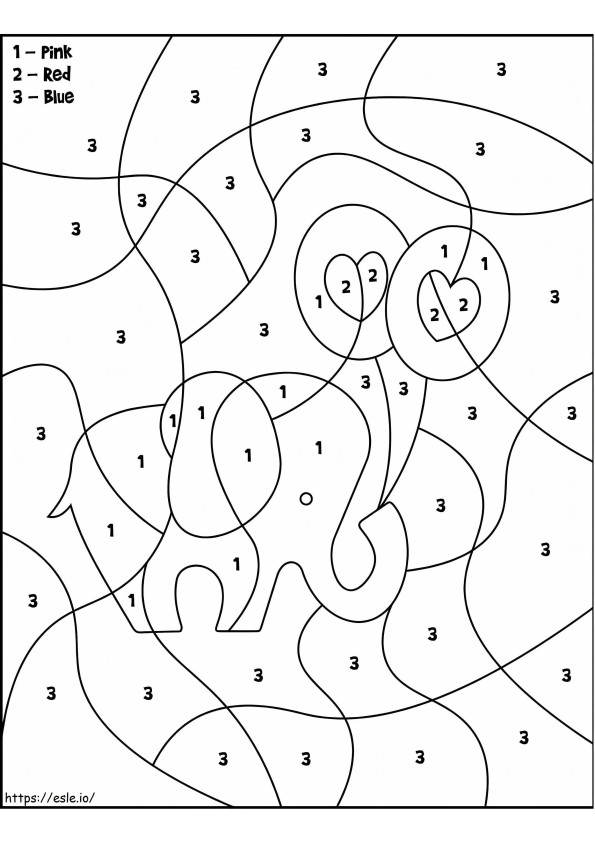 バレンタインの象の番号による色塗り ぬりえ - 塗り絵。