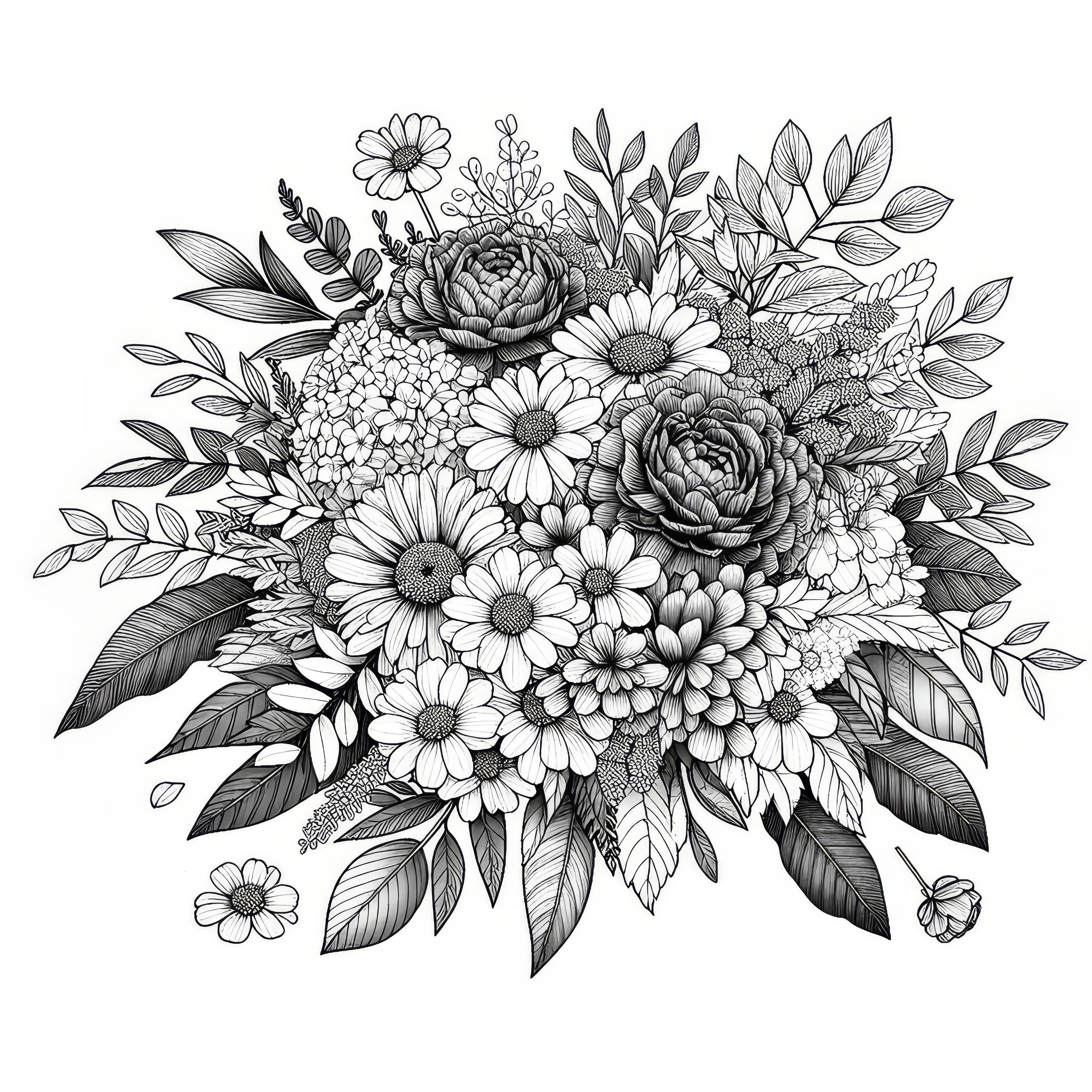 バレンタインデーに贈る大きな花束:無料ぬり絵ダウンロードページ。
