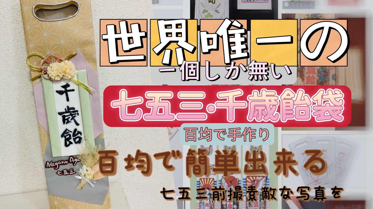 七五三•世界唯一千歳飴袋を作りましょう👘百均で手作り千歳飴袋超簡単👍👘子供にいい思い出👘。