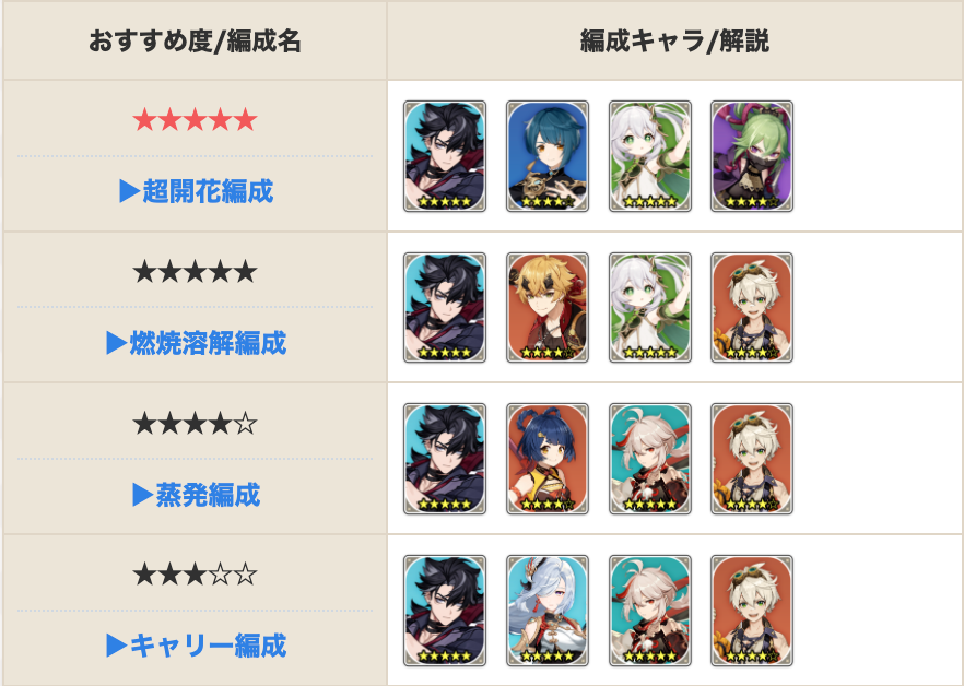 原神攻略@Game8 on X: "リオセスリを使ったおすすめのパーティ編成をまとめました!🥊 超開花と燃焼溶解編成が特に使いやすかったです👀より火力を求めるなら1凸はしておきたいところ😳 ユーザーの皆さんが使ってるリオセスリの編成やおすすめがあれば、ぜひ教えて。