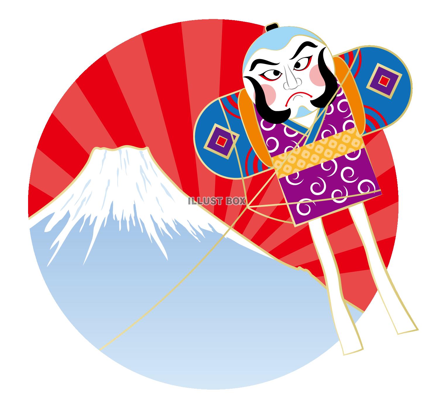 透過・富士山と凧のイラスト リアルシンプルお正月年賀状1月1日元旦カット:イラスト無料。