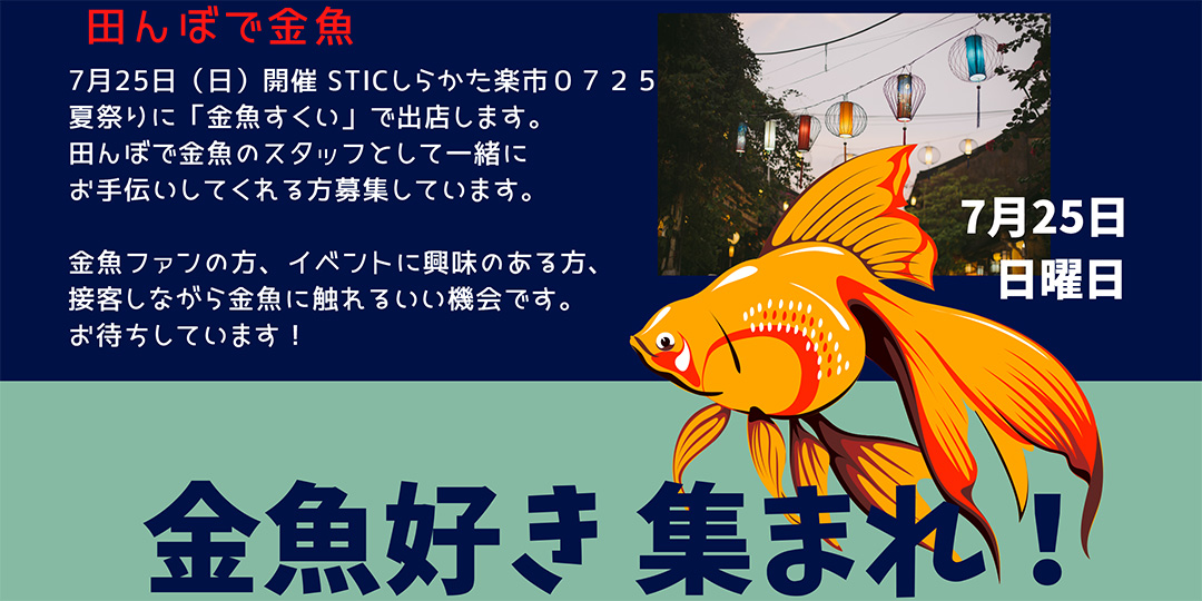 夏祭りでの金魚すくいのお手伝い募集!! 田んぼで金魚 7月22日 木 締切 しまっち!プログラム・コミュニティ島根関係人口マッチング・交流サイト。