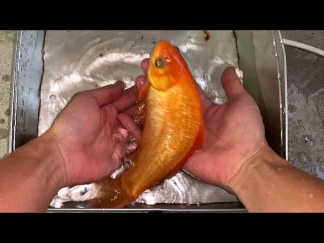 バケツで飼育してもお祭り金魚は大きくなりました!2か月後の身体測定!何センチ大きくなった!? - YouTube。