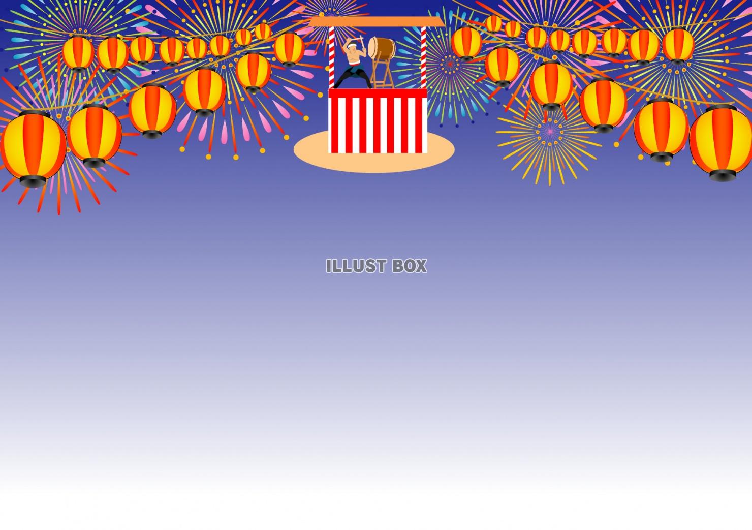 夏祭りの背景 やぐら太鼓付き:イラスト無料。