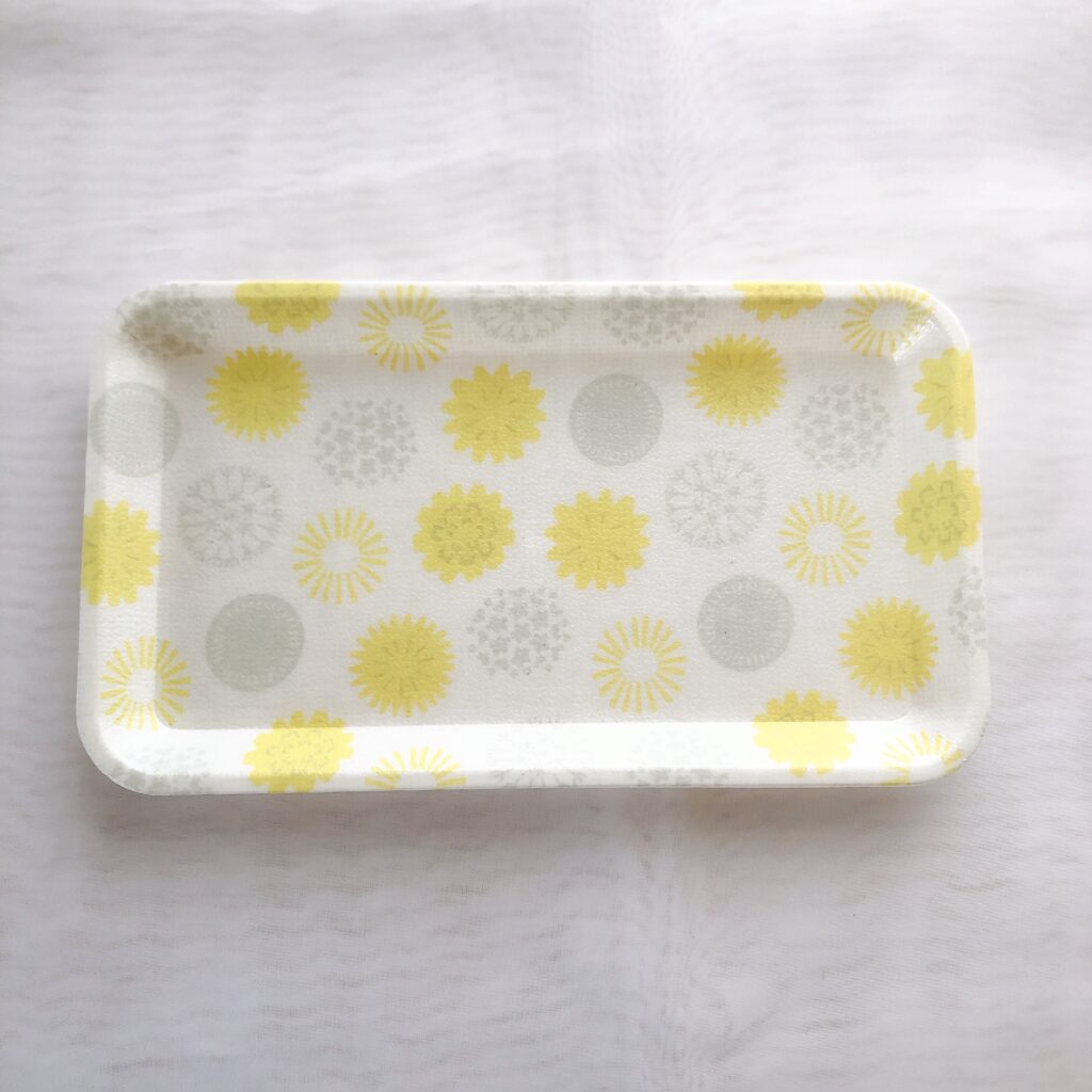 セリア 北欧柄のような小さいたんぽぽ柄のトレーをレビュー!可愛いんだが〜!くらしとふわっと100均ブログ。