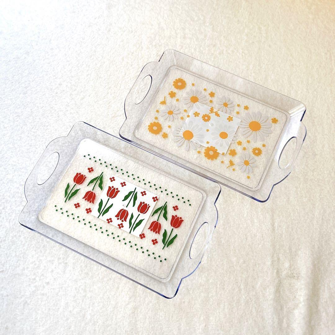 Amazon.co.jp: セリア クリアトレー レトロフラワー トレー トレイ お盆 : ホーム&キッチン。
