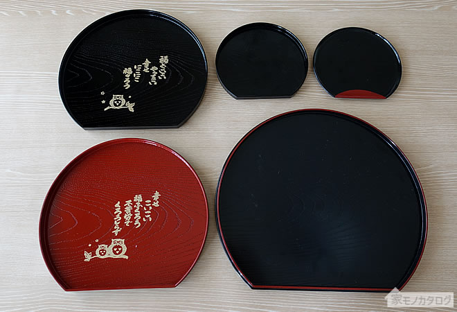 100均・半月盆の商品一覧とサイズ。おせち料理にも ダイソーとセリアで100円。