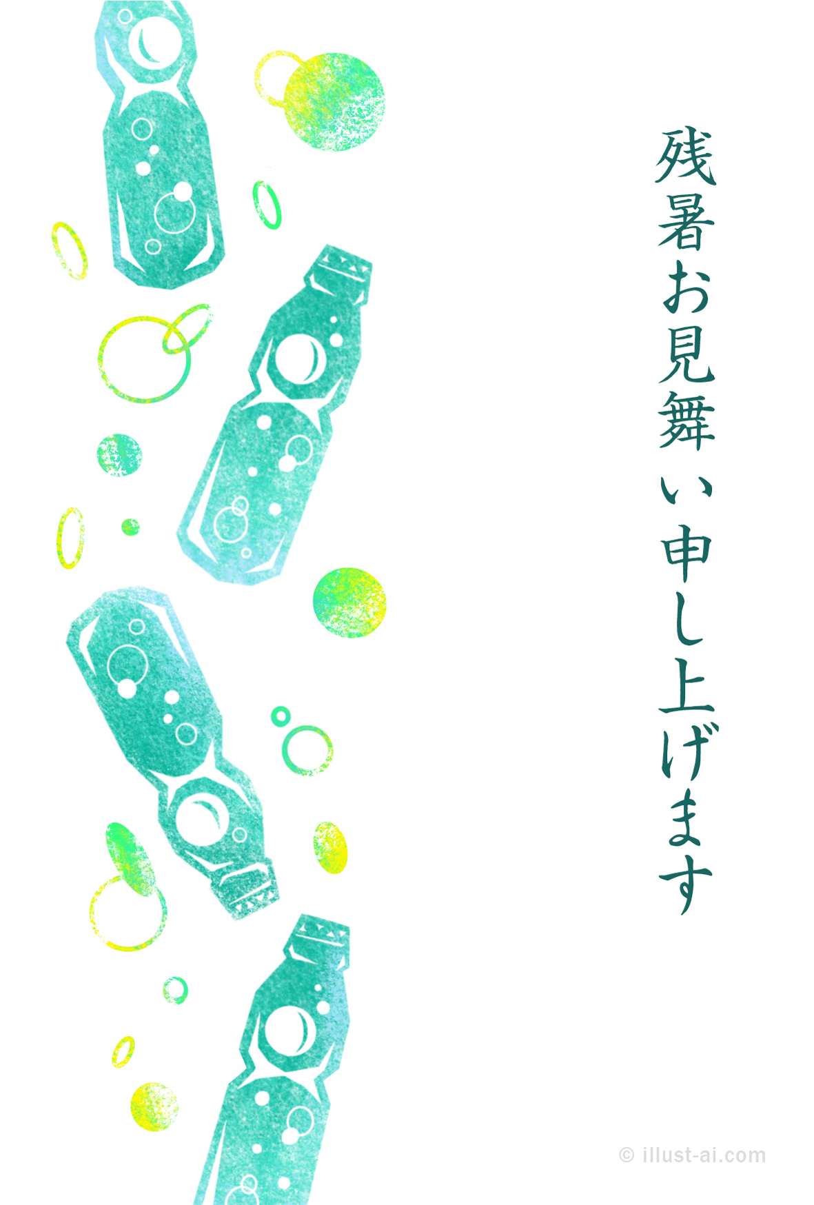 さわやかなラムネのイラスト - 残暑お見舞い2025 ポストカード・イラスト素材サイト イラストareiraPostcard template。