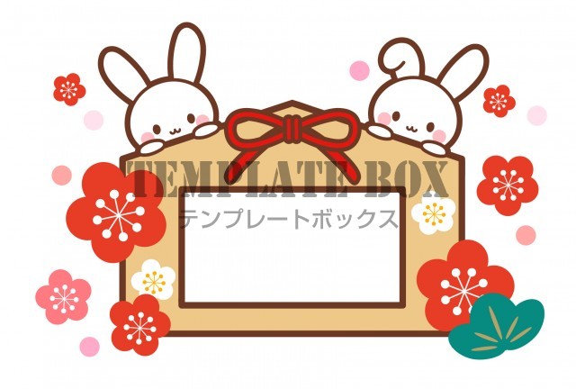 2023年干支卯年 うさぎ年 の年賀状・正月素材・絵馬から顔をのぞかせるかわいいウサギさんのイラスト 透過PNG無料 の年賀状素材TemplateBox。