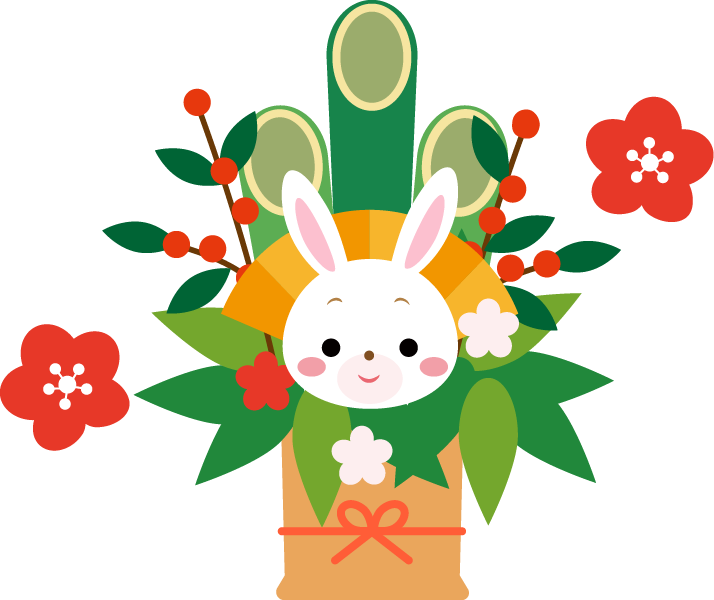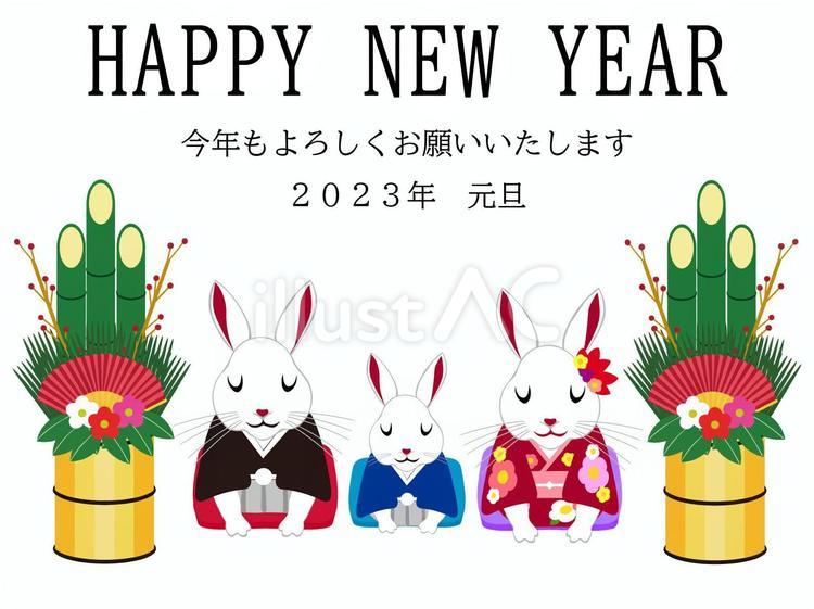 門松と親子のうさぎ かわいい2023 卯年イラスト無料 フリー87352素材Good。
