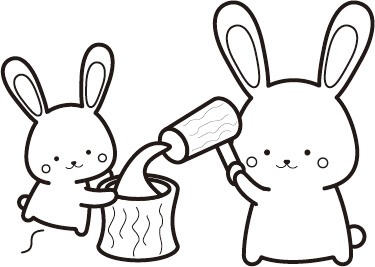 2023年卯 うさぎ 年 ウサギの餅つきのぬり絵 無料無料ペットイラスト Pet-illust 犬・猫・鳥・ペットイラスト ぬりえ・年賀状・カレンダーイラスト多数無料。
