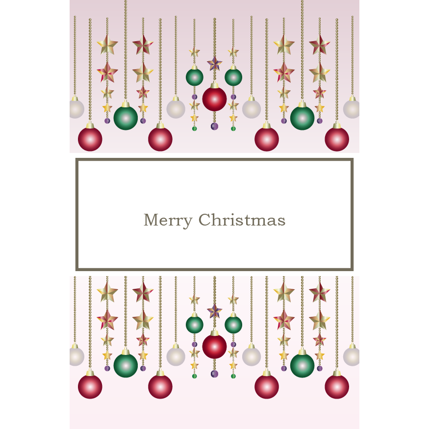 オーナメントのメリークリスマスカードイラストのフリー素材イラストイメージ。