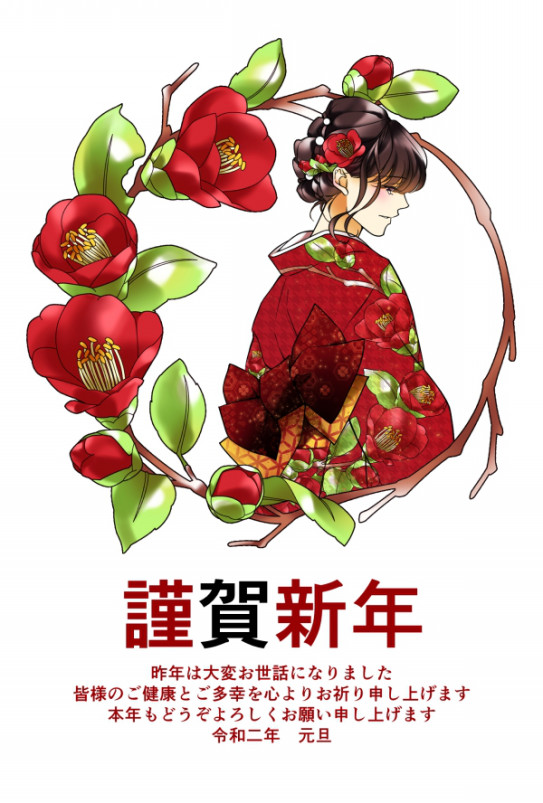 年賀状 筆文字『本年も何卒よろしくお願いします』無料イラスト 縦デザイン 82400素材Good。