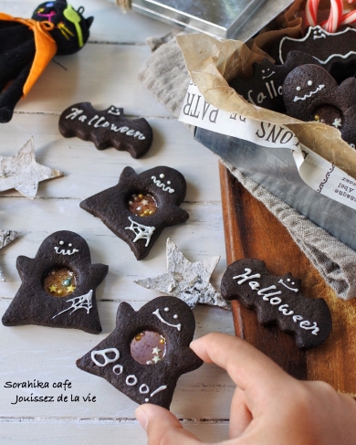 ハロウィン気分を盛り上げる!!おばけのステンドグラスクッキ。