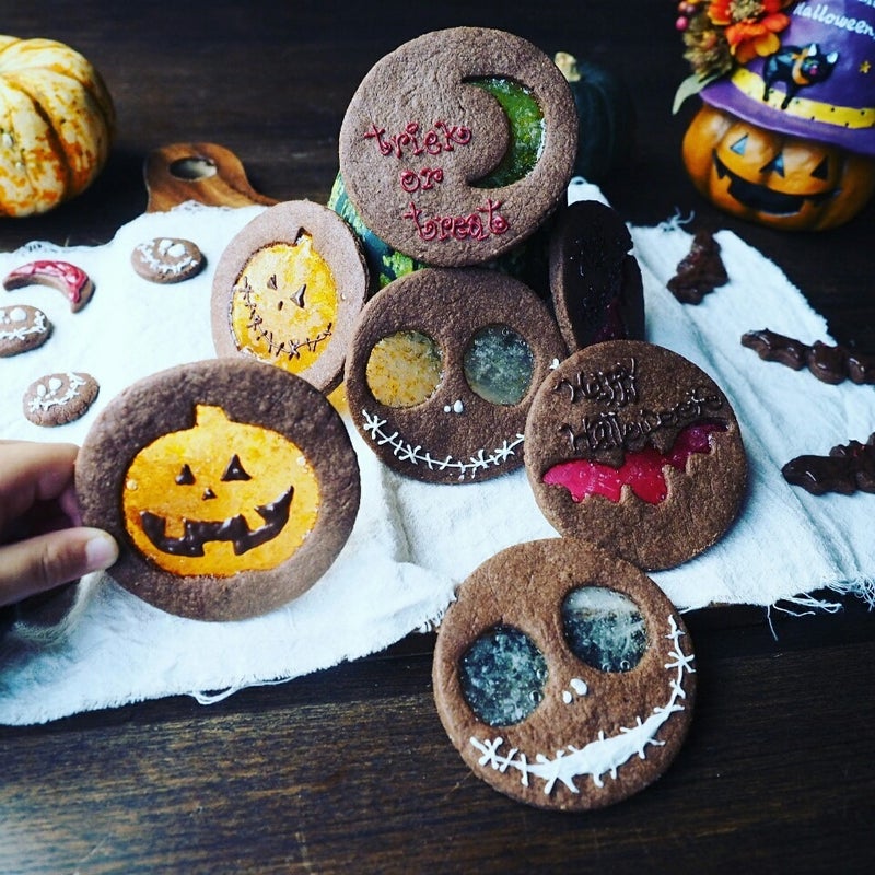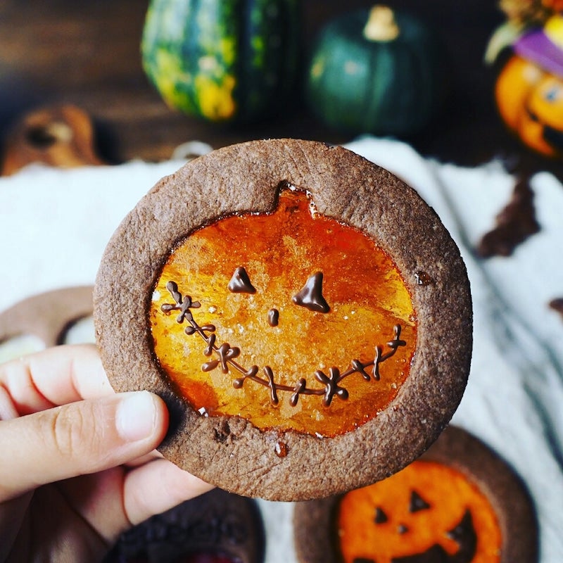 パリパリサクサク食感楽しい👻🦇💀ハロウィンステンドグラスクッキー🎃。