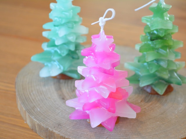 1回完結レッスン クリスマスツリーキャンドルの作り方 カラフルverキャンドル。