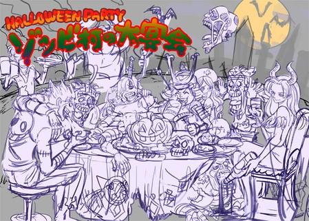 ワンピースの宴会シーンをハロウィンテイストで再現されたバナーの副業・在宅・フリーランスの仕事イラスト制作の求人・案件なら ランサーズ。