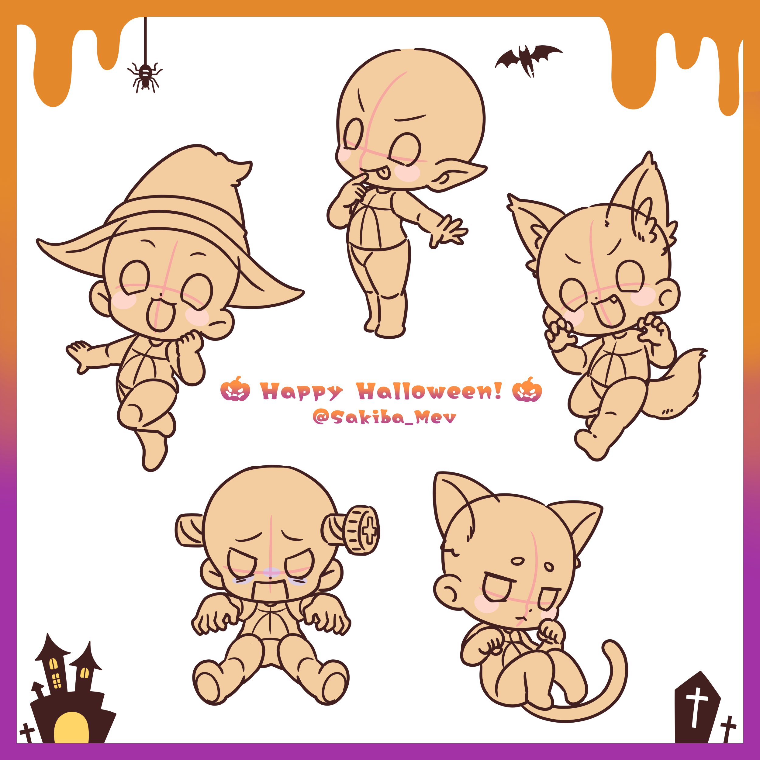 イラスト用トレス素材 on X: "ハロウィンミニキャラ ざっくり書きなので、衣装ポーズ表情などはお好きに改変していただいて大丈夫です!トレス素材https:t.co UOBtGFqo5y"X。