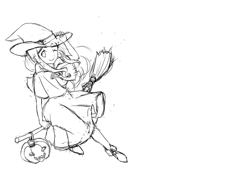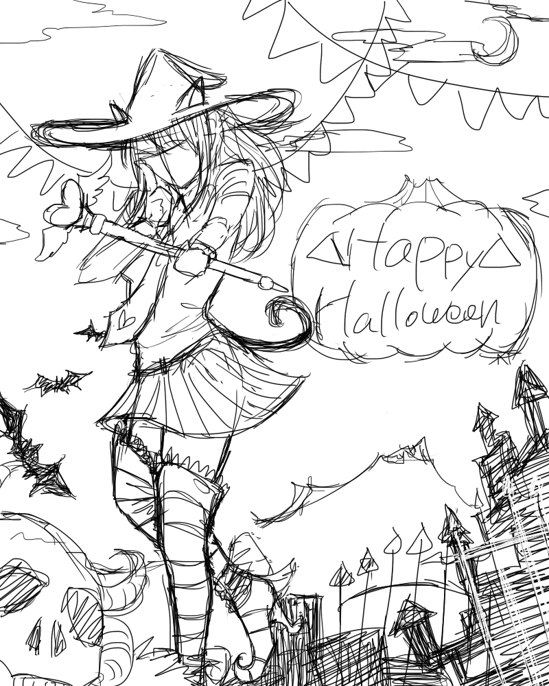 ハロウィンイラスト 構図模索中 その2ふもふも。