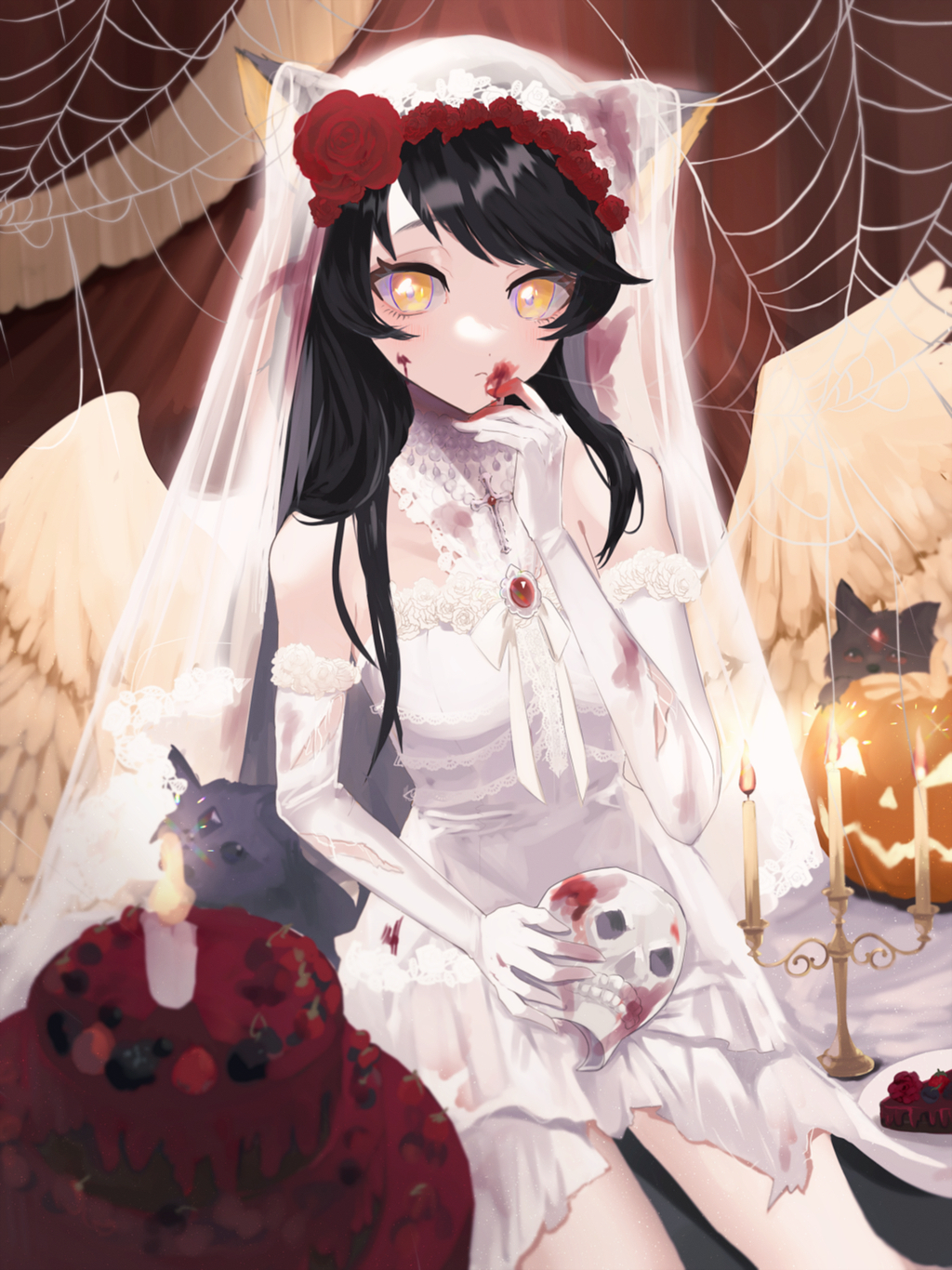 未完成 耳付き HALLOWEEN オリジナル構図 手描きイラスト ハロウィン Elina+@E2n04non X。