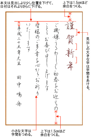 年賀状の揮毫見本と書き方株式会社日本書技研究所。