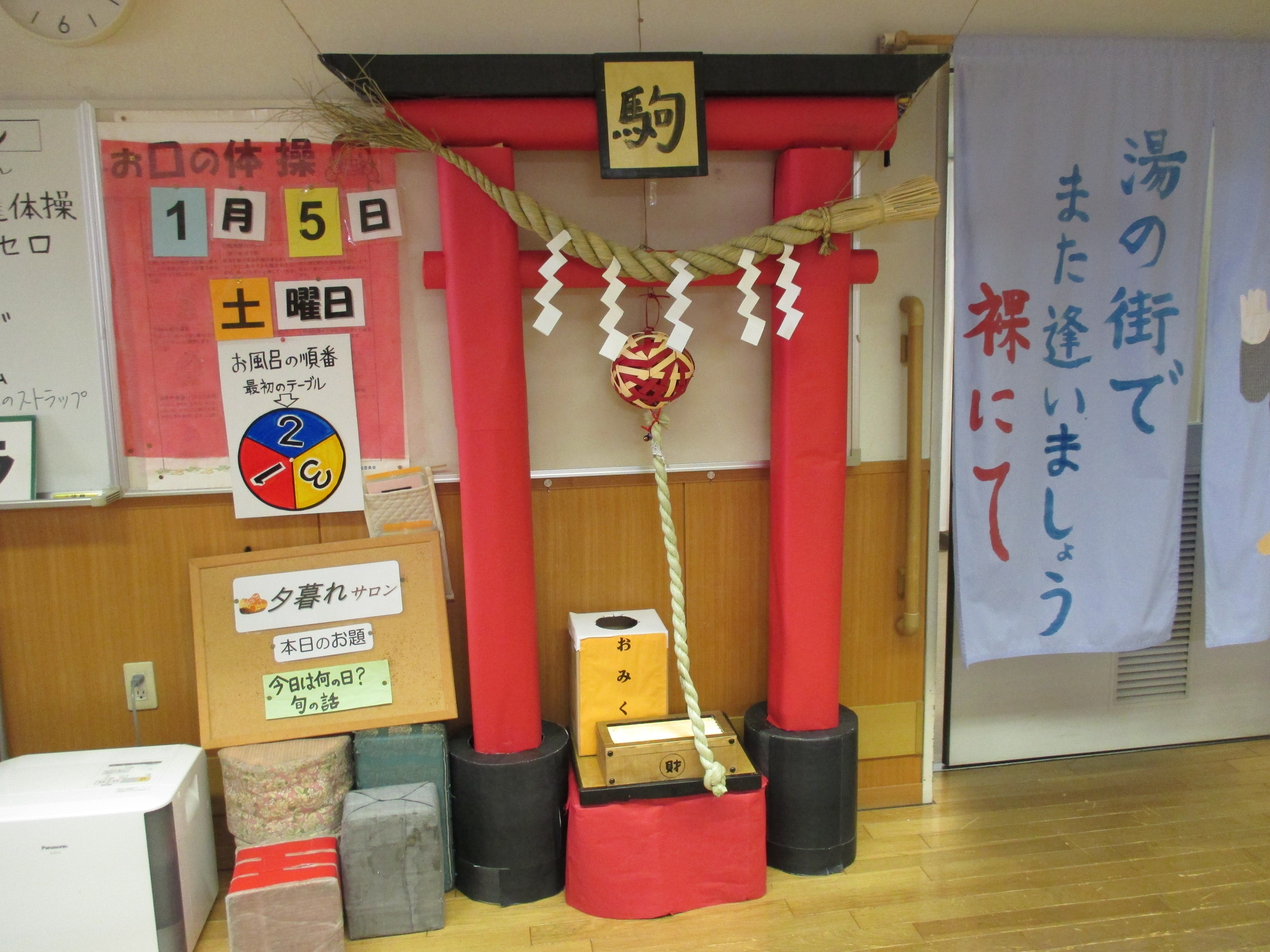 お正月のホール飾り デイサービス草柳– 最新情報。